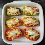 Chicken fajita stuffed peppers are a vibrant dish made by hollowing out bell peppers and filling them with a savory mixture of seasoned chicken, colorful vegetables such as onions and bell peppers, and often topped with cheese. This dish combines classic fajita flavors into a healthy and visually appealing package that’s perfect for dinner or meal prep.