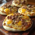An English Muffin Breakfast Pizza is a creative breakfast dish that uses split English muffins as a base instead of traditional pizza dough. Topped with ingredients such as scrambled eggs, cheese, vegetables, and sauces, it’s a customizable meal perfect for mornings. quick and flavorful meal options The combination of flavors makes it an excellent choice for brunch gatherings or quick weekday breakfasts.