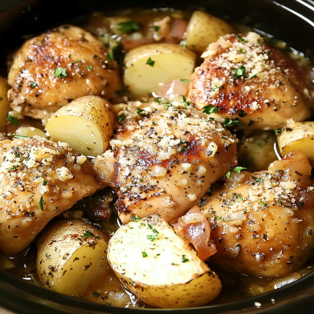 Easy Slow Cooker Parmesan Garlic Chicken and Potatoes Recipe